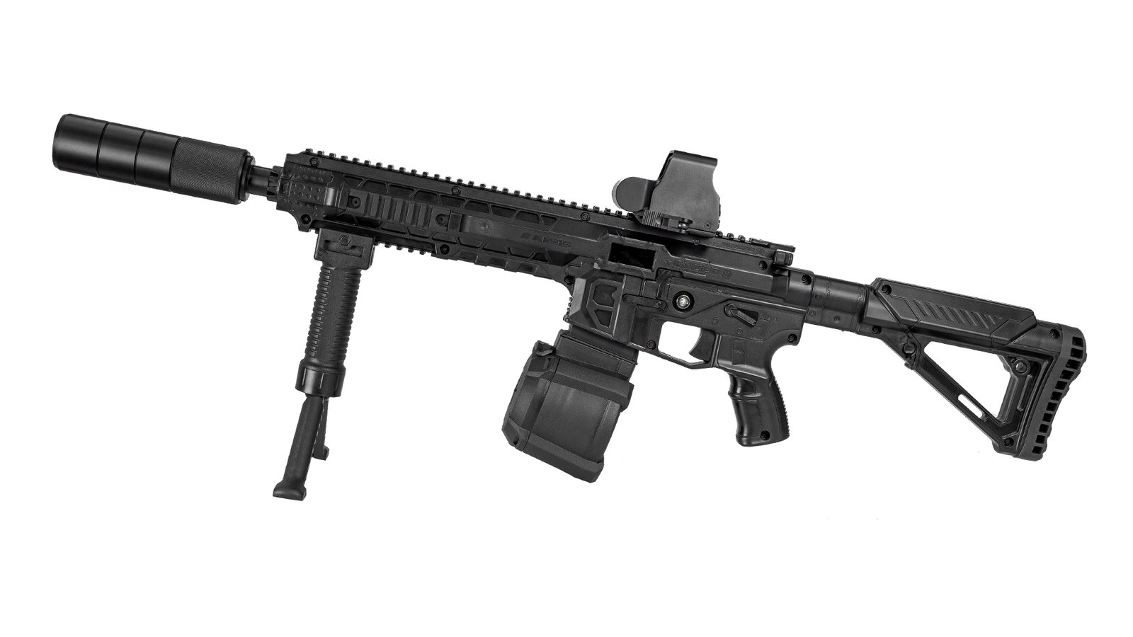 The recognizable features of the AR-15 are implemented in the corporate style of LASERWAR. Every element of the play set is thought out to the last detail. The modular layout allows the AR-15 to be easily converted into a light automatic gun. The outer tube with Prism or Parallax optics, capacious magazine, universal tactical grip which can be transformed into bipod, and Picatinny rails for installing sights and additional equipment – everything is functional and brilliantly thought-out.