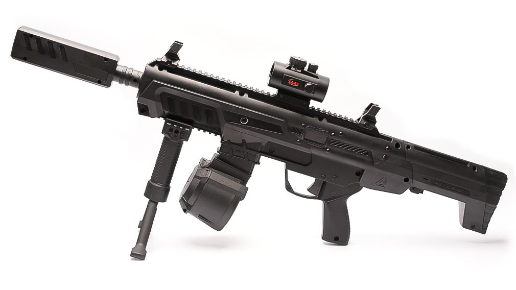 • Picatinny rails for attaching grips, scopes, and accessories