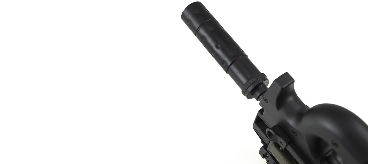 The game set is based on an airsoft weapon from Classic Army. The main advantages of this model are relatively small dimensions and weight. The length of the weapon is 69 cm, and the weight of P90 is 2.760 grams. The body is made of shock-resistant ABS plastic. Thanks to the bullpup system, our specialists managed to achieve a full integration of laser tag electronics. Under the trigger, you can find a fire mode switch (with A, 1, S modes).